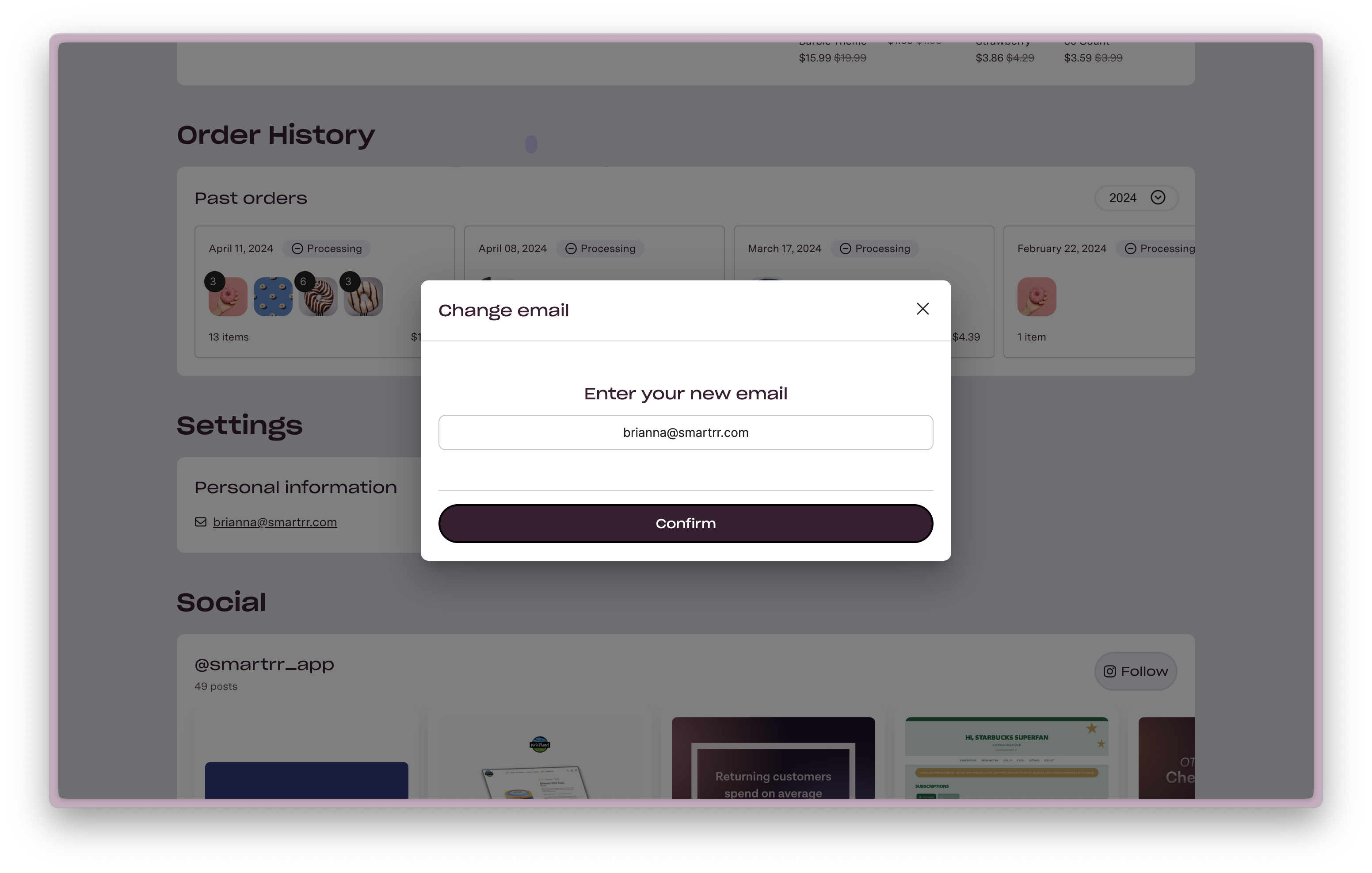 A modal will open prompting the customer to enter the new email they'd like to use.&#x20;