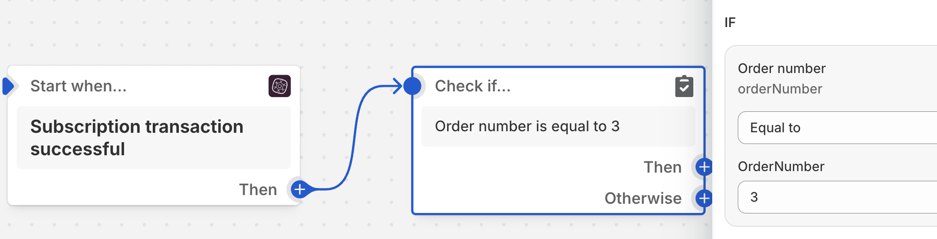 1. Note: this will be the order number for the subscription that you want the action to be applied. For example, on all subscriptions 3rd order you want to add a free gift, then enter 3. This condition is looking ONLY at subscription orders for each individual subscription. It is differentiating subscription orders for that subscription specifically and does not count total orders for that customer.