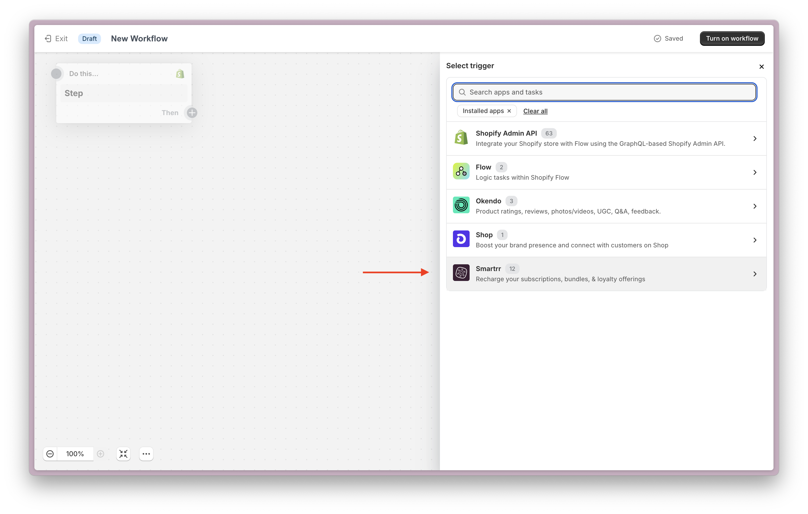 2. Select **Triggers** > **Smartrr** > **Subscription created.**